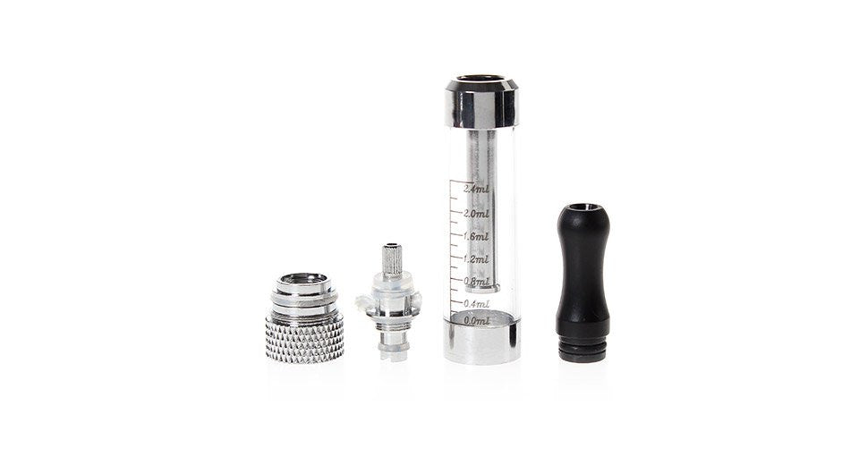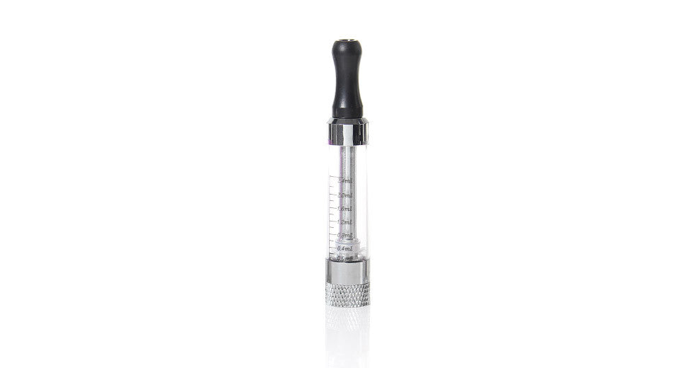 1 Clear 2.4ml Round Mouth Atomizer with Black Plastic Drip Tip (installed with 2.8 Ohm coil)